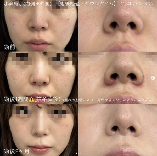 - PICTURE - GLANZ CLINIC > PICTURE > 小鼻縮小 小鼻縮小 21 Oct 2021 小鼻縮小 次へ 前へ カテゴリー人中短縮 脂肪吸引(ジョール+頬下) 脂肪吸引(メーラー) 糸リフト 目元の整形 鼻孔縁挙上 目尻切開+目尻靭帯移動術 二重全切開 目の下のクマ取り 脂肪吸引(アゴ下) ヒアルロン酸 小鼻縮小 鼻プロテーゼ バッカルファット除去 グラマラスライン形成 目頭切開 鼻尖形成 ほくろ・イボ除去 二重埋没法 PICTURE症例写真 TOP